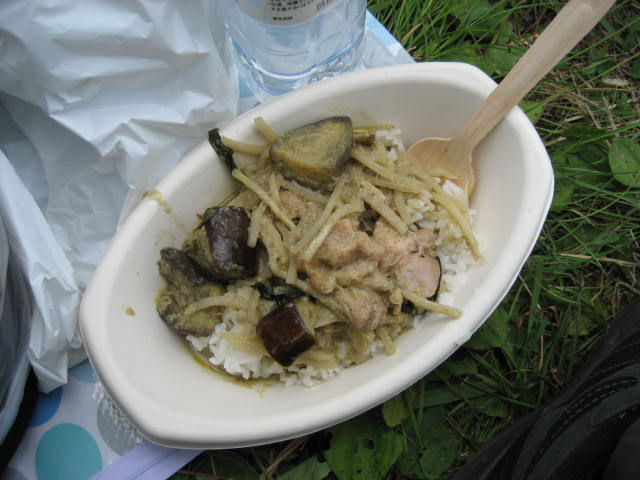 正直暑くてあんまり食欲なかったので、汁気のあるタイラーメンにすごく心惹かれたのであるが、タイラーメンは去年アヴァロンで食べたので、違うものにしようとグリーンカレーをチョイス。
